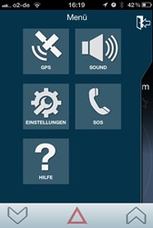 Hinweis: Außerdem kann er selbst den Notruf alarmieren, indem er die Option, „SOS" im Hauptmenü auswählt.