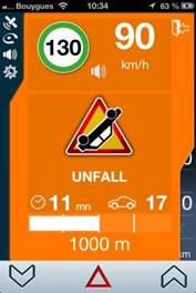 iCoyote meldet nicht nur, wo sich gerade ein Unfall ereignet hat, sondern auch wo sich ein Stau bildet oder wo Fahrbahnverengungen und andere Gefahrenzonen (z.B. Gegenstände auf der Straße) sind.