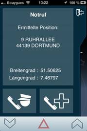 Im Notfall lässt sich über die App der genaue Standort sekundenschnell an Polizei und/oder Notarzt weiterleiten.