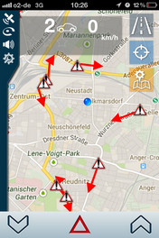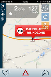 Um eine temporäre Risikozone zu melden, die bisher noch nicht von iCoyote erfasst wurde, braucht man nur auf den Button unten links oder rechts in der Maske zu drücken.