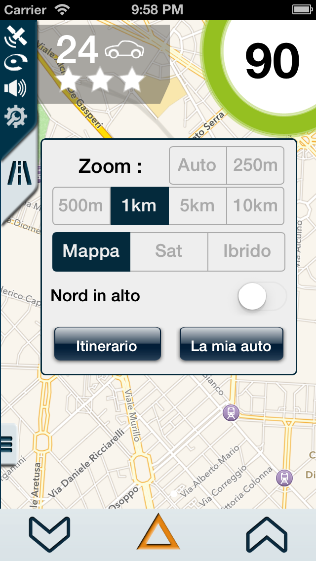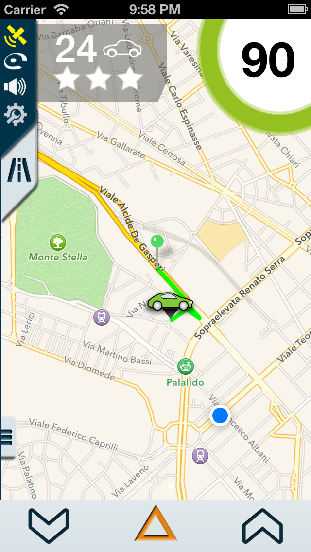 L’icona di qualità GPS diventerà verde se potete utilizzare iCoyote, diventerà invece grigia, arancione o gialla se la qualità del Gps non è ottimale per l’utilizzo.