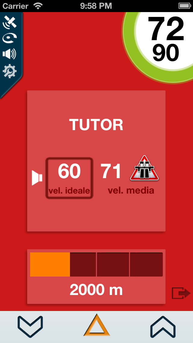 Ti verrà indicato il tipo di sistema di controllo velocità, la tua velocità istantanea e media (verde= ok, giallo= bene, rosso= rischio), il limite di velocità in vigore nel tratto e la distanza che ti separa dal prossimo portale.