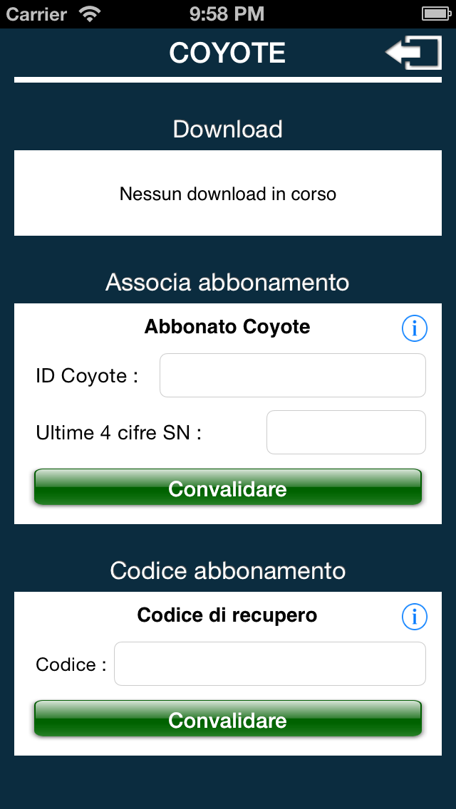 • Immettere l ID di un dispositivo Coyote per utilizzare l'applicazione in modo gratuito