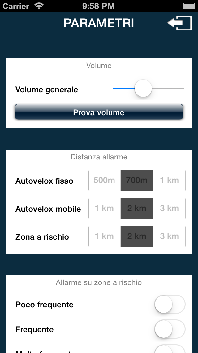 E’ inoltre possibile cambiare dal menu impostazioni la distanza di avviso e il tipo di sistema di avvertimento (silenzioso, sonoro o vocale)