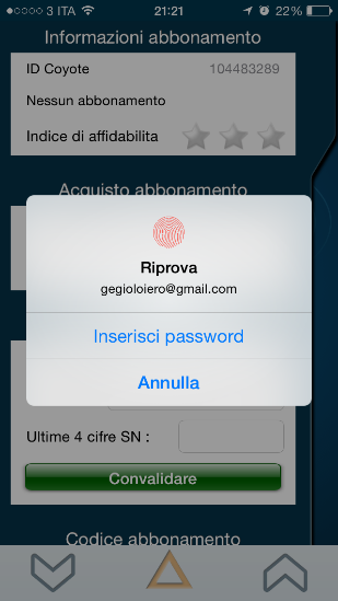Scaduto il periodo di prova dovrai inserire il tuo ‘ID COYOTE’ e le ultime 4 cifre del ‘SN’