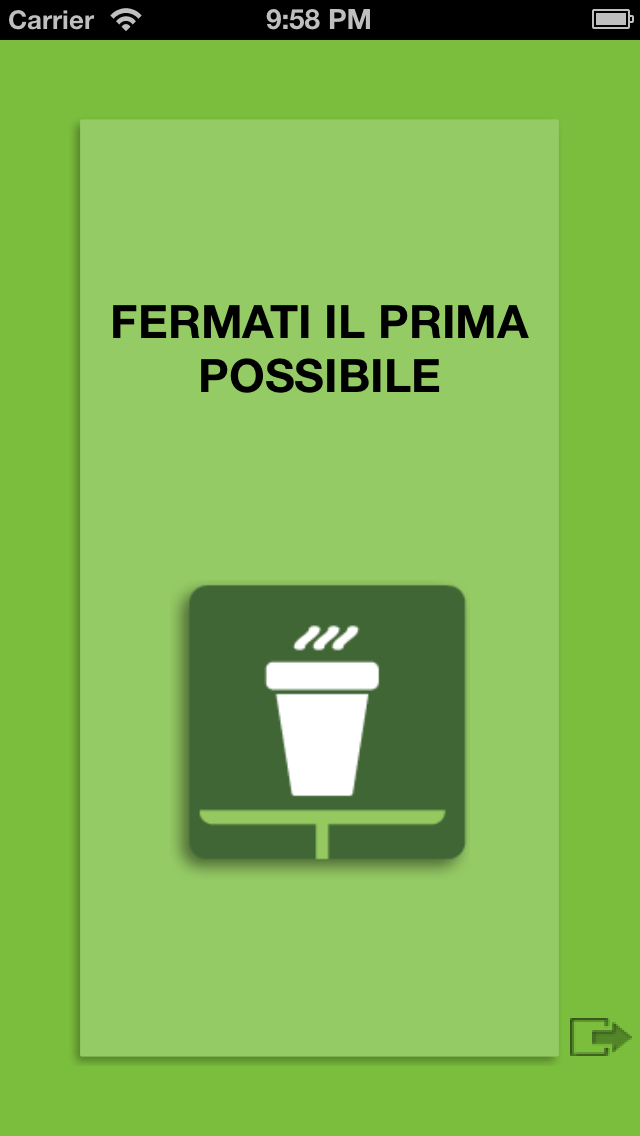 Quando viene individuato un rischio, COYOTE ti aiuta a valutare se devi prendere una pausa, indicando alcuni sintomi della sonnolenza e poi ti chiede se ti senti assonnato. Se lo sei, COYOTE ti invita a fermarti.