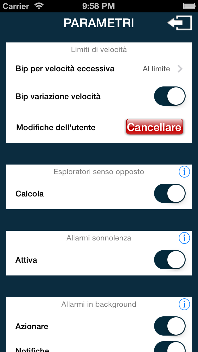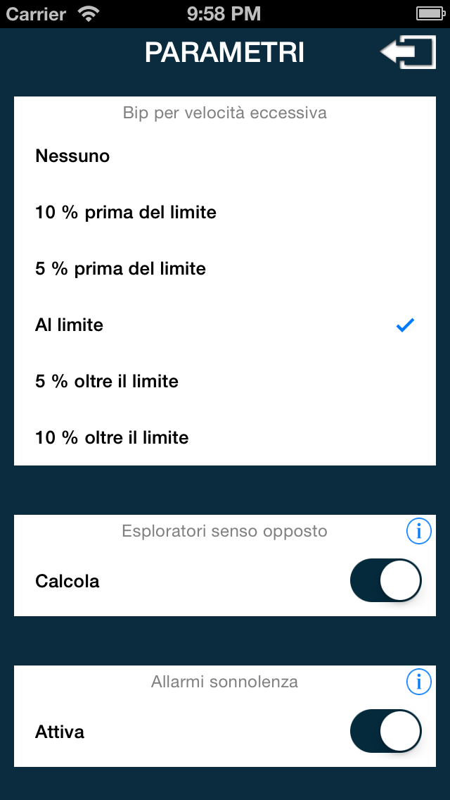 Limiti di velocità (disponibili come acquisto in-app nel Menu Coyote)