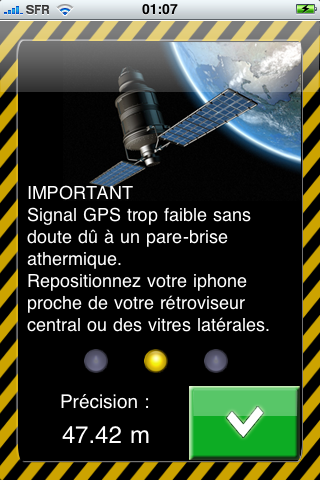 Solution : Démarrer l’application à l’extérieur loin d’une borne WIFI. Ou désactiver le WIFI (Réglages / WiFI / désactiver)