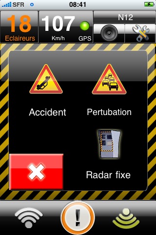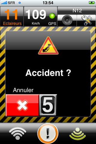 Comme pour le signalement d’un radar mobile, vous disposez de 5 secondes pour annuler un signalement erroné.