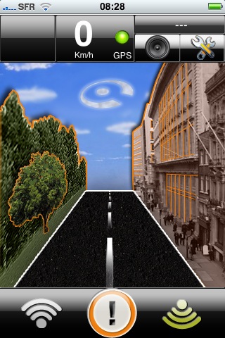 Au démarrage, l’écran principal vous affiche la vitesse de votre véhicule telle que calculée par le GPS de votre iPhone, ainsi que la qualité du signal GPS :