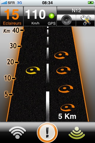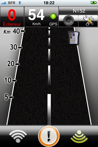 Pour signaler la présence d’un nouveau radar fixe qui ne serait pas encore indiqué par iCoyote, il vous suffit d’appuyer sur le bouton central en bas de l’écran.